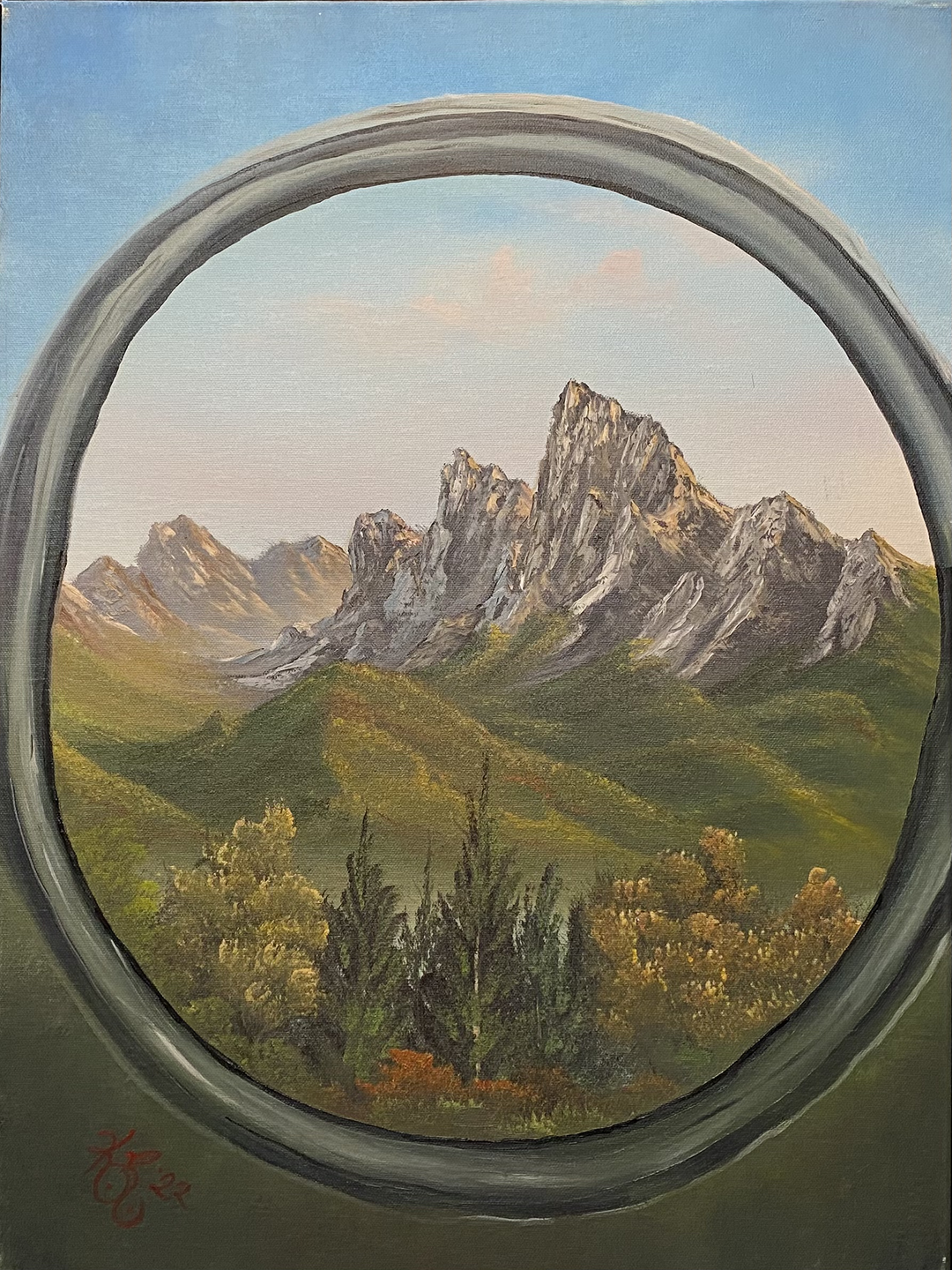 “Through the Lens” is a captivating oil painting that invites viewers to peer into a world seen uniquely through the artist’s perspective. This piece features a vivid play of light and shadow, masterfully captured through the fine strokes and nuanced palette characteristic of oil media. With its focus on an intriguing, almost ethereal landscape viewed through a camera lens, this work explores the beautiful juxtaposition between reality and the artistry of perception. Perfect for art enthusiasts and collectors alike, “Through the Lens” is a mesmerizing addition that promises to transform any space into a focal point of imagination and depth.