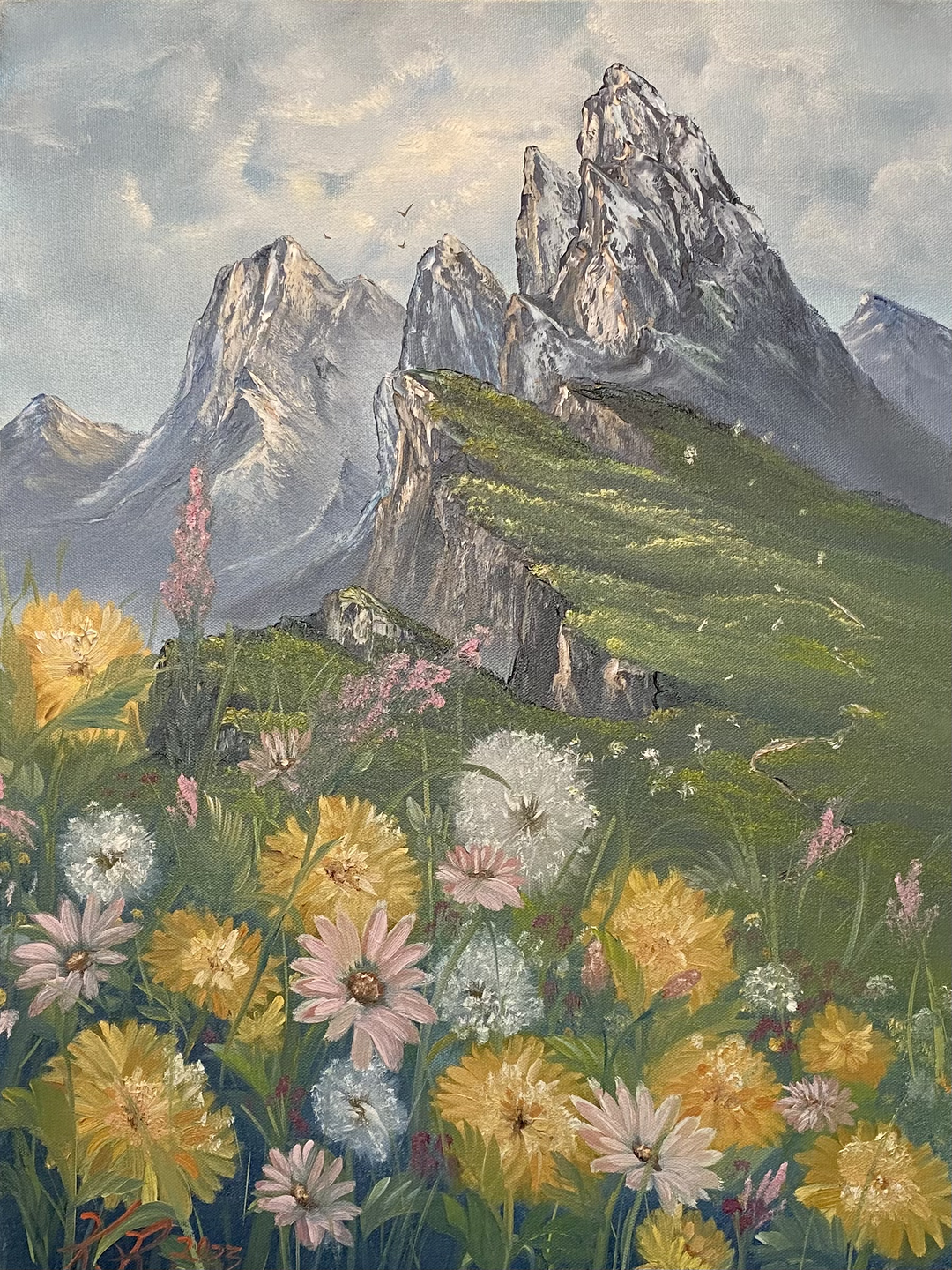 “To the Summit” is a captivating oil painting that embodies the spirit of resilience and aspiration. This artwork invites viewers on a visual ascent, portraying a rugged mountain path glistening under a hopeful dawn sky. Each brushstroke captures the rough textures of rocky terrain and the soft light cascading over the horizon. Measuring 24×36 inches, this piece is an ode to the invigorating challenge of rising to the peak, making it a perfect centerpiece for any room that craves a touch of inspiration and the serene reminder of nature’s grandeur. Let “To the Summit” elevate your space, instilling a sense of accomplishment and peace with every glance.